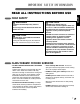 O P E R AT I N G I N S T RU C T I O N S SETTING BROIL To set the oven to broil at the Hi or Lo setting: ENGLISH Leave the door open to the broil stop position. The door will stay open by itself, yet the proper temperature is maintained in the oven. Broil Stop Position Place the meat or fish on the broiler Broil on one side until food is grid in the broiler pan. browned; turn and cook on the other side.