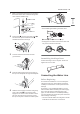 INSTALLATION 19 1 Make sure that the plastic sleeve is inserted in the bottom of the door. Install the refrigerator door onto the middle hinge. ENGLISH NOTE • Disassembling/Assembling the Water Lines 2 Fit the hinge a over the hinge lever latch b and slot it into place. Rotate the lever c clockwise and fasten the hinge. e Collet f Tube g Insert line h Clip • Gently press the collet and insert the tube until only one line shows on the tube. 3 Connect all the wire harnesses and the ground screw.