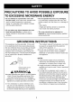 IMPORTANT SAFETY INSTRUCTIONS The safety instructions below will tell you how to use your oven to avoid harm to yourself or damage to your oveR. WARN IN- , - To reduce the risk of burns, electric shock, fire, injury to persons, or exposure to excessive microwave energy: 1. Read all instructions before using the appliance. PRECAUTIONS TO AVOID POSSIBLE EXPOSURE TO EXCESSIVE MICROWAVE ENERGY found on page 3ofthis manual. 2. Read and foltowthe specific 3. This appliance must be grounded.