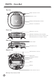 PARTS - Hom Bot Top view Upper camera sensor Dust bin cover Display & Manipulation button Dust bin cover button Front view Ultrasonic sensors Obstacle detecting sensor window, Detecting sensors of home station and Receiving sensors of remote control Rear view Power switch Ventilation port Bottom view Cliff detection sensors Side brush Charging terminal Brush Wheel Battery Lower camera sensor s Images may vary by model.