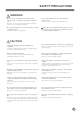 SAFETY PRECAUTIONS WARNING 1) Place the cords from other appliances out of the area to be cleaned. 2) Do not operate the vacuum in a room where an infant or child is sleeping. 3) D o not operate the vacuum in an area where there are lit candles or fragile objects on the floor. 4) D o not operate the vacuum in a room that has lit candles on furniture that the vacuum may acciden tally hit or bump into. 5) Do not allow children to sit on the vacuum. 6) Do not use the vacuum on a wet surface.