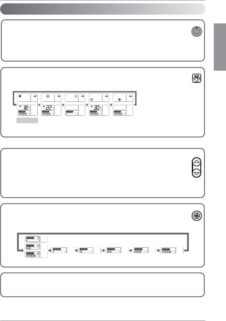 Each time the button is pressed, the fan speed mode is shifted in the direction of the arrow.
