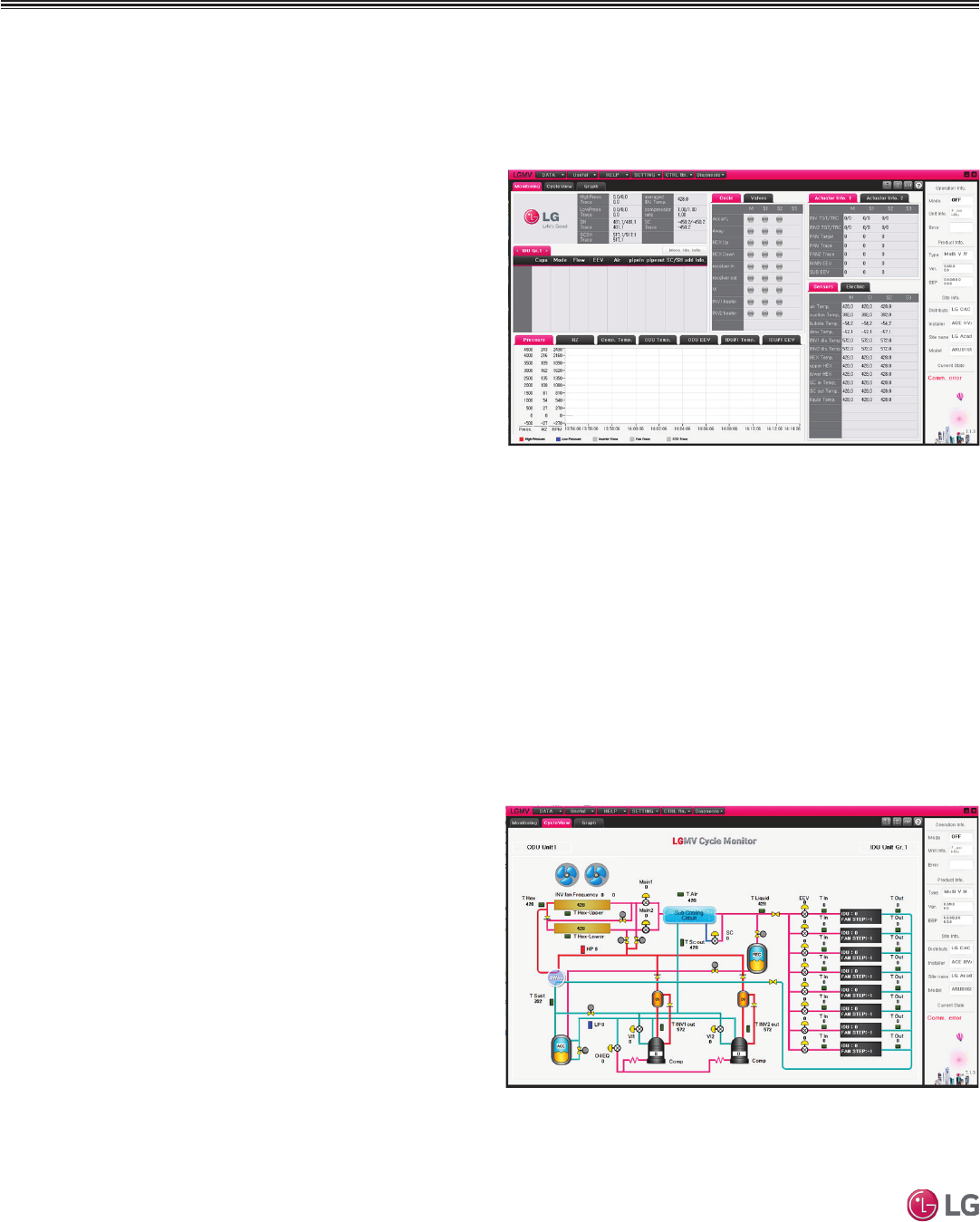 outdoor unit’s main printed circuit board (PCB) using an accessory cable. The monitoring screen for LGMV allows the user to view the fol-