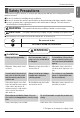 Safety Precautions ENGLISH CAUTION n Installation Install the drain hose to ensure that drain can be securely done. • Otherwise, it may cause water leakage. Always inspect gas leakage after the installation and repair of product. • Otherwise, it may cause the failure of product. Install the product so that the noise or hot wind from the outdoor unit may not cause any damage to the neighbors. • Otherwise, it may cause dispute with the neighbors. Keep level parallel in installing the product.