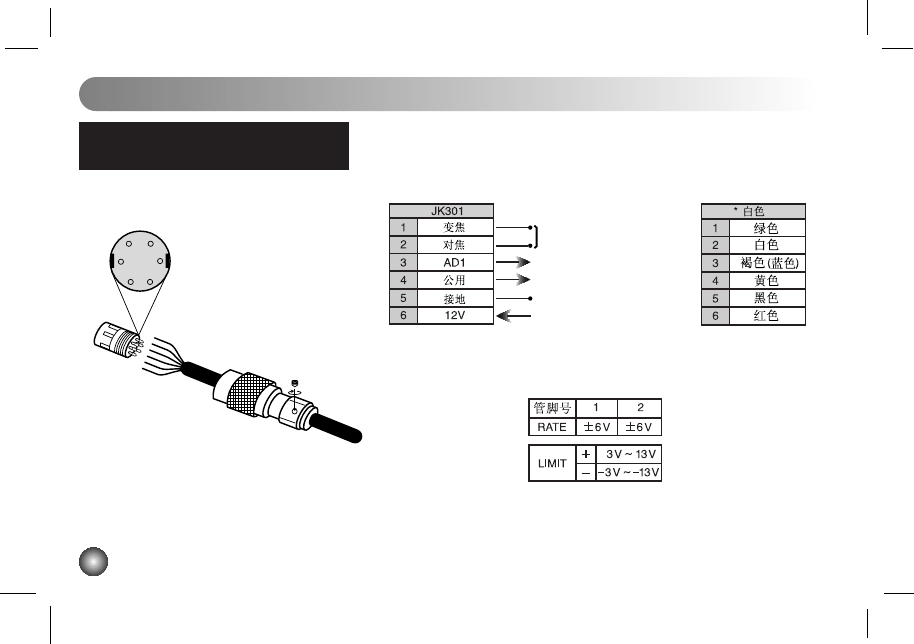 您可以通过摄像机背面的针形端子调节焦距和变焦。
