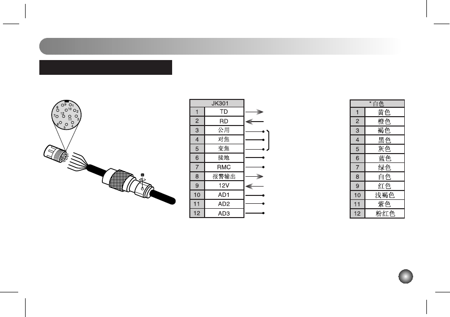 您可以通过摄像机背面的针形端子调节焦距和变焦。
