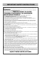 IMPORTANT SAFETY INSTRUCTIONS SAFETY - MICROWAVE The safety instructions below will tell you how to use your oven to avoid harm to yourself or damage to your oven. WARNING -excessive To reduce the risk of burns, electric shock, fire, injury to persons, or exposure to microwave energy: 1. Read all instructions before using the appliance. PRECAUTIONS TO AVOID POSSIBLE EXPOSURE TO EXCESSIVE MICROWAVE ENERGY found on page 1 of this manual. 2. Read and follow the specific 3. This appliance must be grounded.