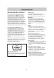 OPERATING INSTRUCTIONS(CONT'D) MICROWAVE POWER LEVELS Your microwave oven is equipped with ten power levels (11 steps including 0) to give you maximum flexibility and control over cooking. When your cooking program is completed, a beep automatically sounds. The table below will give you some idea of which foods are prepared at each of the various power levels. MICROWAVE POWER LEVEL CHART Power Level Output (of watts) Use ● Boil water. ground beef. ● Cook fresh fruits & vegetables. ● Make candy.