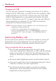 122 Specifications The Optimus M phone and AndroidTM 2.2 mobile platform feature the following specifications. Physical dimensions Height: 4.56 inches Width: 2.22 inches Depth: 0.62 inches Weight: 5.57 oz. Storage Internal Memory: 102MB microSD card: 2GB microSD card included (expandable to 32GB) Display 3.2-inch (diagonal) widescreen 320x480 Power and battery Removable 1500 mAH Li-Ion Talk time: Up to 7 hours Standby time: Up to 20 days Cellular and wireless 800 MHz CDMA Cellular 1.