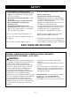 SAFETY IMPORTANT SAFETY INSTRUCTIONS The safety instructions below will tell you how to use your oven and avoid harm to yourself or damage to your oven. WARNING - To reduce the risk of burns, electric shock, fire, injury to persons, or exposure to excessive microwave energy. • Read all the instructions before using your oven. • Do not allow children to use this oven without close supervision. • Suitable for use above both gas and electric cooking equipment 36 inches wide or less.