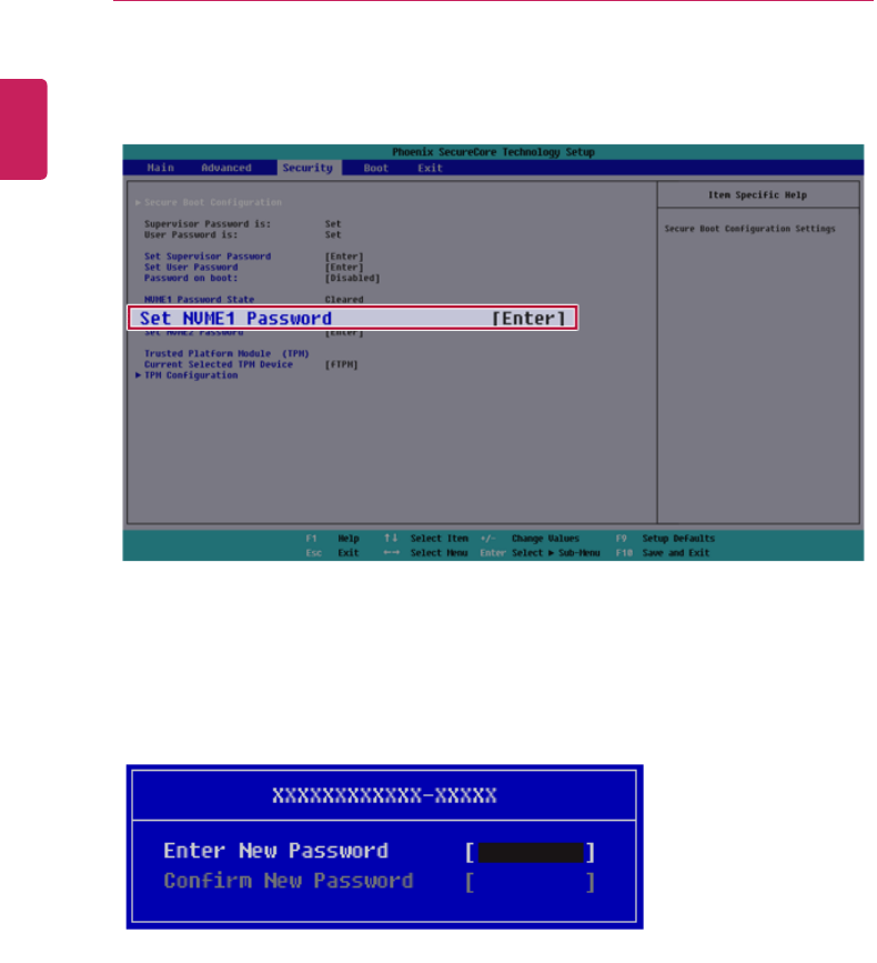 3 When the Set NVME1 Password setting screen appears, enter the password and press the