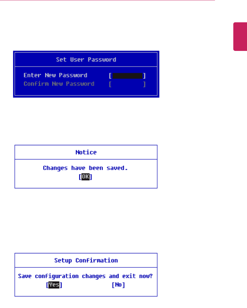 3 When the Set User Password setting screen appears, enter the password and press the [Enter]