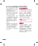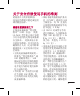 关于安全有效使用手机的准则 请阅读以下简单的准则。 违反这些准则可能造成危险 或者触犯法律。 暴露在射频能量之下 无线电波暴露和“特定吸 收率”(SAR) 信息。 此款 LG-P698 型手机已设计为遵 守有关适用的无线电波暴露 安全要求。 此要求基于相 关的科学准则,其中包括为 确保所有人员(无论年龄和 健康状况)安全而设计的安 全裕量。 • 无线电波暴露准则采用一 种称为“特定吸收率”或 SAR 的测量单位。 SAR 测试是在所有用到的频带 中以手机的最高认可功率 电平进行发射时使用标准 化方法执行的。 • 不同的 LG 手机型号可能 有不同的 SAR 能级,但 它们均符合相关的无线电 波暴露准则。 • 国际非游离辐射防护委员 会 (ICNIRP) 建议的 SAR 上限值为:每 10 克重的 人体组织吸收的能量平均 值不超过 2 W/Kg。 • 由 DASY4 对该型号手机 进行的测试,人耳能够承 受的 SAR 最大值为 1.26 W/kg(10 克),戴在身 体上时,其值为 1.15 W/ kg(10 克)。 • 本设备在靠近耳朵的正常 使用位置使用或放置在距 人体至少 1.