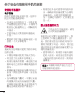 关于安全有效使用手机的准则 请阅读以下简单的准则。 违反这些 准则可能造成危险或者触犯法律。 暴露在射频能量之下 无线电波暴露和“特定吸收 率”(SAR) 信息。 此款 LG-P970 型手机已设计为遵 守有关适用的无线电波暴露安全要 求。 此要求基于相关的科学准则, 其中包括为确保所有人员(无论年 龄和健康状况)安全而设计的安全 裕量。 • 无线电波暴露准则采用一种称 为“特定吸收率”或 SAR 的测 量单位。 SAR 测试是在所有用到 的频带中以手机的最高认可功率 电平进行发射时使用标准化方法 执行的。 • 不同的 LG 手机型号可能有不同 的 SAR 能级,但它们均符合相关 的无线电波暴露准则。 • 国际非游离辐射防护委员会 (ICNIRP) 建议的 SAR 上限值为: 每 10g 重的人体组织吸收的能量 平均值不超过 2 W/kg。 4 • 由 DASY4 对该型号手机进行的 测试,人耳能够承受的 SAR 最大 值为 1.27 W/kg(10 克),戴在 身体上时,其值为 1.43 W/kg(10 克)。 • 本设备在靠近耳朵的正常使用位 置使用或放置在距人体至少 1.