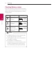Operating Checking Battery status If the power turned on, you can check the charging status by pressing the 1 button for 2 seconds. Then Battery LED light will change depending on battery charging status. LED Description 2 Green Green Battery LED turns on green. Operating Amber Amber Red Red Battery LED turns on amber. Battery LED continuously blinks in red with the sound.