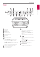 Getting Started 7 Front c g h d e f 1 Getting Started b a i j k Enhanced Bass a Battery LED b Power LED c Bluetooth LED d CLEAR VOCAL LED e ENHANCED BASS LED f Microphone g 1 Turns On / Off: Press it. h j - Adds a Bluetooth device for multi phone pairing. (Press and hold j for 2 seconds) - Changes to Bluetooth mode in portable mode. (Press j) * When you connect the portable cable, the function is changed to portable mode. i P : Turn down the volume. j O : Turn up the volume.
