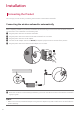 Installation Connecting the Product You can enjoy a richer sound by connecting the sound bar to the wireless subwoofer. Connecting the wireless subwoofer automatically After completing installation, the wireless subwoofer will automatically be connected to the sound bar. Connect the sound bar to the subwoofer in the following order. a Plug the power cable into the wireless subwoofer. b Plug the power cable connected to the wireless subwoofer into an outlet. c Plug the power cable into the AC adapter.