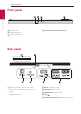 Getting Started 9 About LED condition LED Description OPTICAL LED turns on. OPTICAL function is selected. OPTICAL LED blinks twice and turns on. LG sound sync (Optical) function is selected. USB LED turns on. USB function is selected. USB LED blinks. Paused USB playback. BT (Bluetooth) LED turns on. Paired with Bluetooth device. BT (Bluetooth) LED blinks. Waiting for Bluetooth connection. LG TV LED turns on. LG Sound Sync (Wireless) function is selected. HDMI IN LED turns on.