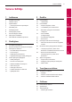 Satura rādītājs 5 Satura rādītājs 1 Iesākumam 3 Darbība 2 6 6 6 7 8 8 9 10 11 Drošības informācija Unikālas iezīmes Iepazīstināšana – Instrukcijā izmantotie apzīmējumi Tālvadības pults Priekšējais panelis Aizmugurējais panelis Par LED lampiņas stāvokli Skaņu joslas instalēšana Galvenā bloka uzstādīšana pie sienas 23 23 23 23 23 24 2 Pieslēgšana 13 13 15 15 15 17 18 19 19 20 20 21 21 21 22 AC adaptera pieslēgšana Bezvadu zemfrekvenču skaļruņa savienojums Savienojiet ar televizoru – OPTISKĀ kabeļa