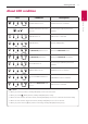 Getting Started 9 About LED condition LED Description OPTICAL LED turns on. OPTICAL function is selected. OPTICAL LED blinks twice and turns on. LG Sound Sync (Optical) function is selected. USB LED turns on. USB function is selected. USB LED blinks. Paused USB playback. BT (Bluetooth) LED turns on. Paired with Bluetooth device. BT (Bluetooth) LED blinks. Waiting for Bluetooth connection. LG TV LED turns on. LG Sound Sync (Wireless) function is selected. HDMI IN LED turns on.