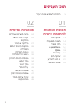 תוכן העניינים 5 הנחיות לשימוש בטוח ויעיל 01 02 תכונות הניתנות להתאמה אישית פונקציות בסיסיות 13 שיתוף מהיר 14 תצוגה ממוזערת 24 רכיבי מוצרים ואביזרים 25 סקירה כללית של החלקים 15 חלון כפול 27 הדלקה או כיבוי 16 +QuickMemo 28 18 QSlide התקנת כרטיס הSIM- והסוללה 31 טעינת הסוללה 32 מיטוב חיי הסוללה 33 הכנסת כרטיס הזיכרון 34 מסך המגע 37 מסך ראשי 43 נעילת מסך