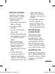 LG krovikliai sukurti taip, kad pailgintų akumuliatoriaus naudojimo laiką. • Neišmontuokite ir nesukelkite trumpojo jungimo. • Metaliniai akumuliatoriaus kontaktai turi būti švarūs. • Kai akumuliatorius nebeveikia tinkamai, pakeiskite. Akumuliatorius gali būti įkraunamas šimtus kartų, kol jį reikės pakeisti. • Jei telefono nenaudojote ilgą laiką, įkraukite bateriją, kad pailgintumėte jos tinkamumą naudoti.