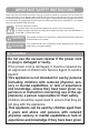 IMPORTANT SAFETY INSTRUCTIONS WARNING • Keep children away and beware of obstructions when rewinding the cord to prevent personal injury. The cord moves rapidly when rewinding. (Depending on model) • The hose contains electrical wires. Do not use it if it is damaged, cut or punctured. Failure to do so could result in death,or electrical shock. (Depending on model) CAUTION • Do not put any objects into openings. Failure to do so could result in product damage. • Use accessory nozzles in sofa mode.