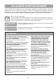 WARNING • Do not continue to vacuum if any parts appear missing or damaged. Personal injury or product damage could result. In these cases, contact LG Electronics Service Agent to avoid hazard. • Do not use an extension cord with this vacuum cleaner • Repairs to electrical appliances may only be performed by qualified service engineers. Improper repairs may lead to serious hazards for the user. • Do not plug in if control knob is not in OFF position. Fire hazard or product damage could result.