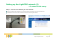 Setting up the LightPRO network (1) - IP network side setup Step 1 Connect IoT Gateway to IPv4 network Connect the IoT gateway with a LAN Router. Then find the IP address of IoT gateway in the client list of DHCP Server. This will allow PC web to access to the IoT Gateway and Jennet‐IP network using the IP address.