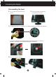 Connecting the Display Disassembling the stand 1. Put a cushion or soft cloth on a flat 2. Place the monitor face down on surface. 3. the cushion or soft cloth. Change your lock on the product as it follows and turn it in the arrow direction. If you can't release the stand base even the locking knob is at a release position, Please push the indicated knob down and retry it. 4. Pull out the stand to remove.