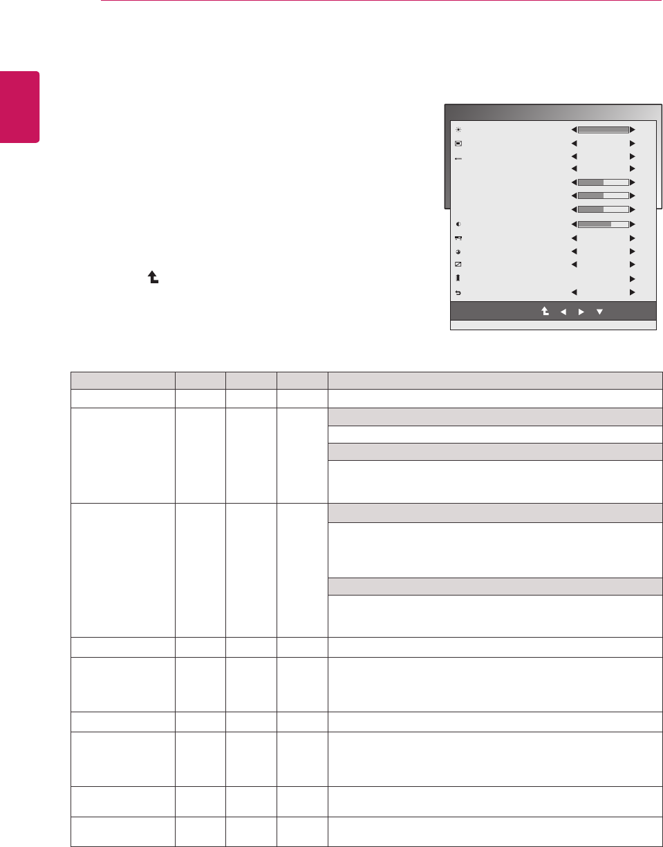 PresstheMENUbuttontodisplaytheoptionsintheOSD