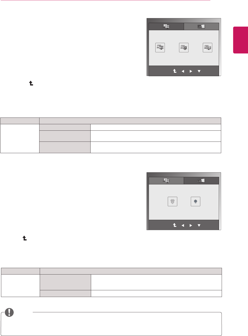 TheavailableDUALMONITORsettingsaredescribedbelow.