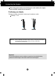 Connecting the Display Before setting up the monitor, ensure that the power to the monitor, the computer system, and other attached devices is turned off. Positioning your display 1. Adjust the position of the panel in various ways for maximum comfort. Tilt Range : -5˚~20˚ 20 Warning: When adjusting the angle of the screen, do not put your finger(s) in between the head of the monitor and the stand body . You can hurt your finger(s).