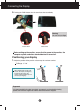 Connecting the Display Before setting up the monitor, ensure that the power to the monitor, the computer system, and other attached devices is turned off. Connecting the stand 1. Place the monitor with its front facing downward on a soft cloth. 2. Assemble the Stand Body into the product in the correct direction as shown in the picture. Make sure you push it until you hear it “click”. Hinge Body Stand Body 3. Assemble the Stand Base(Front, Rear) into the Stand Body in the correct direction.