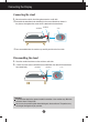 Connecting the Display Connecting the stand 1. Place the monitor with its front facing downward on a soft cloth. 2. Assemble the stand base into stand body in the correct direction as shown in the picture, then tighten the screw which is attached to the stand base. Stand Body Stand Base Screw 3. Once assembled take the monitor up carefully and face the front side. Disassembling the stand 1. Place the monitor face down on the cushion or soft cloth. 2.