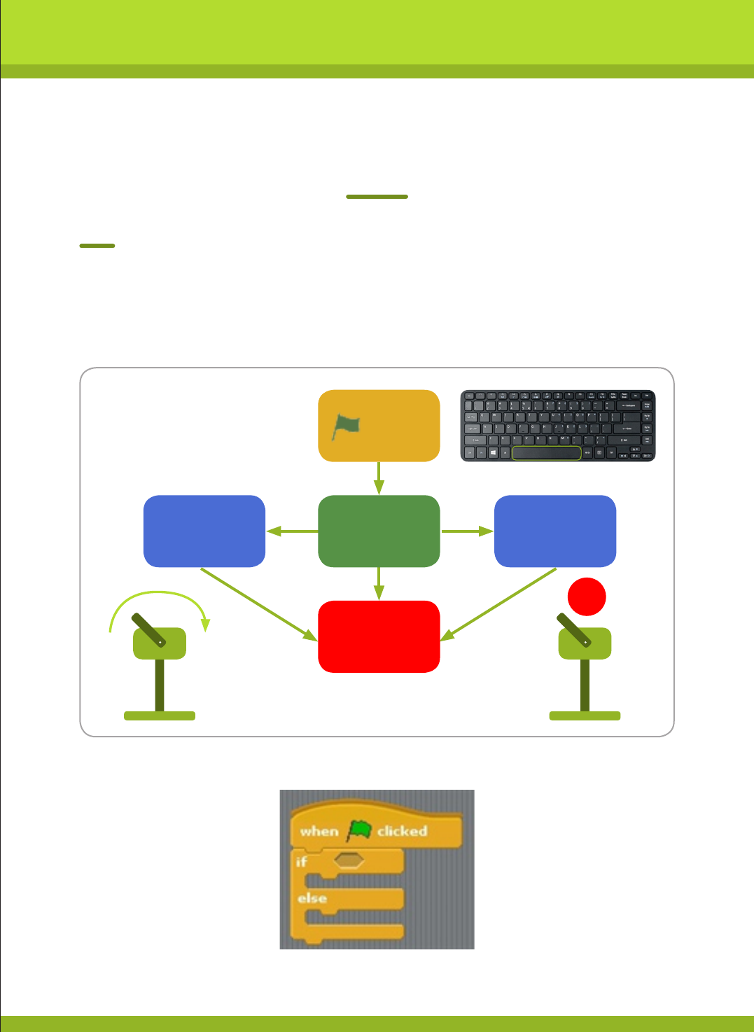 To start the program, bring the ‘if or else’ block under the green flag block.