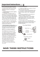 Important Instructions When using electrical appliances,basic precautions should always be followed to reduce the risk of fire, electric shock, and injury to persons, including the following: ① Read all instructions before installing or using this heater. ② This heater is hot when in use. To avoid burns, do not let bare skin touch hot surfaces. Keepcombustible materials, such as furniture, pillows, bedding, papers, clothes, etc. and curtains at least 3 feet ( 0.
