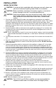 OSSERVATE LE REGOLE DEL “SUONO SENZA PERICOLI” La costante esposizione a livelli di pressione acustica al di sopra dei 100dB possono causare la perdita permanente dell’udito. I sistemi audio ad alta potenza possono produrre livelli di pressione acustica ben superiori ai 130dB. Si consiglia il buon senso e l’osservanza delle regole del “suono senza pericoli.” Istruzioni di Sicurezza Questo simbolo con la dicitura “AVVERTIMENTO” intende avvertire l’utente alla presenza di istruzioni importanti.