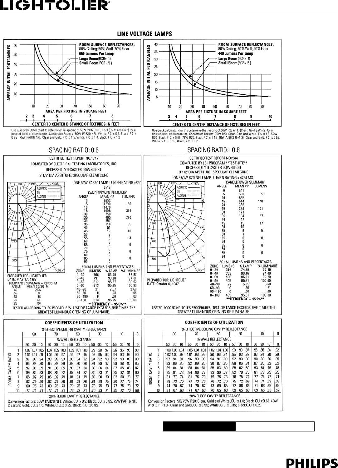 To convert lighting data for a lower wattage lamp of the same type, multiply