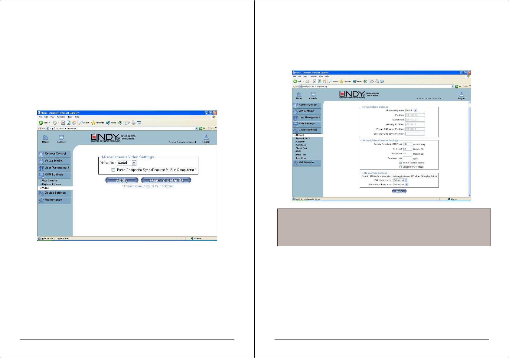 acceleration setting. The IP ACCESS KVM SWITCH CLASSIC tries to detect the