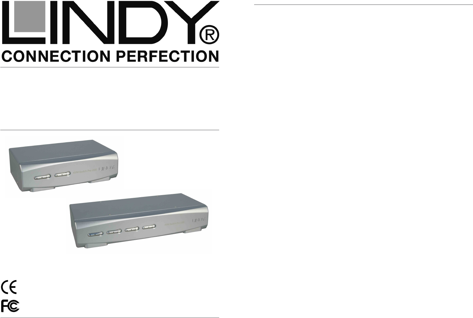 Thank you for purchasing the LINDY KVM Switch Pro Audio. This product is covered by a