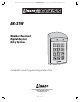 PRINTER’S INSTRUCTIONS: INSTR,INSTL,AK-21W - LINEAR P/N: 228041 A - INK: BLACK - MATERIAL: 20 LB. MEAD BOND - SIZE: 8.500” X 11.000” - SCALE: 1-1 - FOLDING: ALBUM-FOLD - BINDING: SADDLE-STITCH AK-21W Weather Resistant Digital Keyless Entry System Installation and Programming Instructions (760) 438-7000 USA & Canada (800) 421-1587 & (800) 392-0123 Toll Free FAX (800) 468-1340 www.linearcorp.