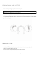Attaching the neck guide to FITT360 Check the left (L) and right (R) sides of the neck guide. [Note] Select the appropriate neck guide for your neck size. 1. Insert the neck guide in the direction of the arrow until you hear a ‘click’ sound. 2. To remove the neck guide, slide it in the direction of the arrow while pulling out the middle part of the neck guide. Wearing the FITT360 1. Hold the FITT360 with two hands; ensure the button is located on your right side. 2. Adjust the product behind your neck.