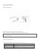 Using the FITT360 Charging the battery Charge the battery before using the FITT360 for the first time. Connect the charger to the USB cable and plug the charger into the outlet. [Note] Use the enclosed adapter. Checking the battery level 1. Briefly press the power button down to check the battery power.