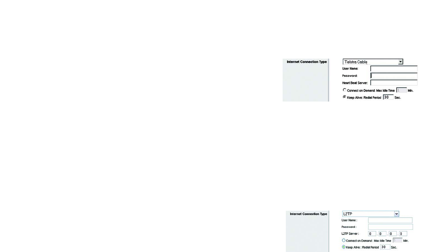 Keep Alive Option: Redial Period (Permanent: Genopkaldsperiode). Hvis du vælger denne indstilling, så vil