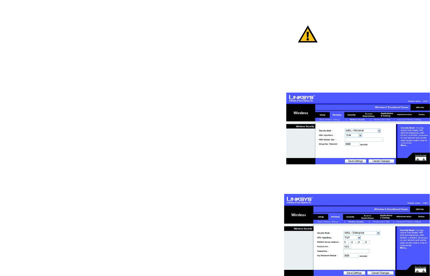 Onglet Wireless - Wireless Security (Sans fil - Sécurité sans fil)