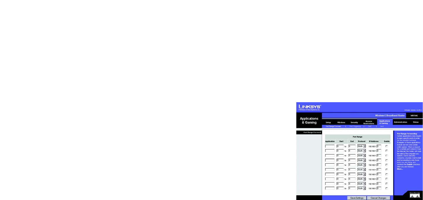 Onglet Applications and Gaming - Port Range Forward (Applications et jeux - Transfert de connexion)