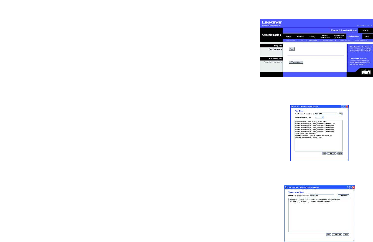 Traceroute Test. To test the performance of a connect, click the Traceroute button. Enter the address of the PC