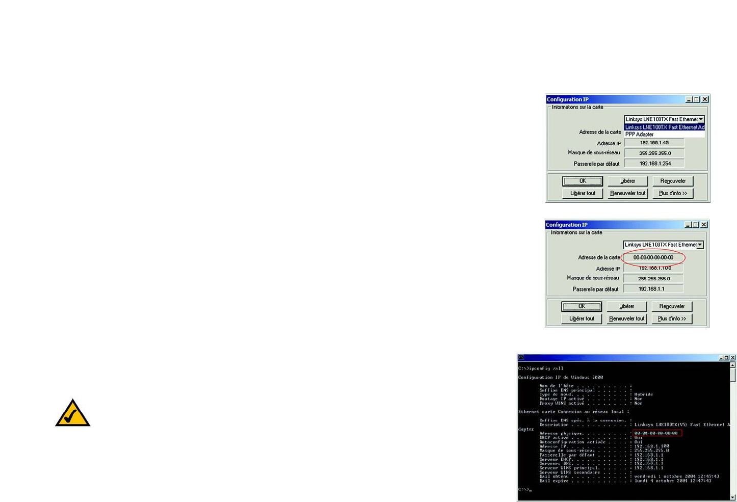 Annexe E : Recherche des adresses MAC et IP de votre adaptateur Ethernet