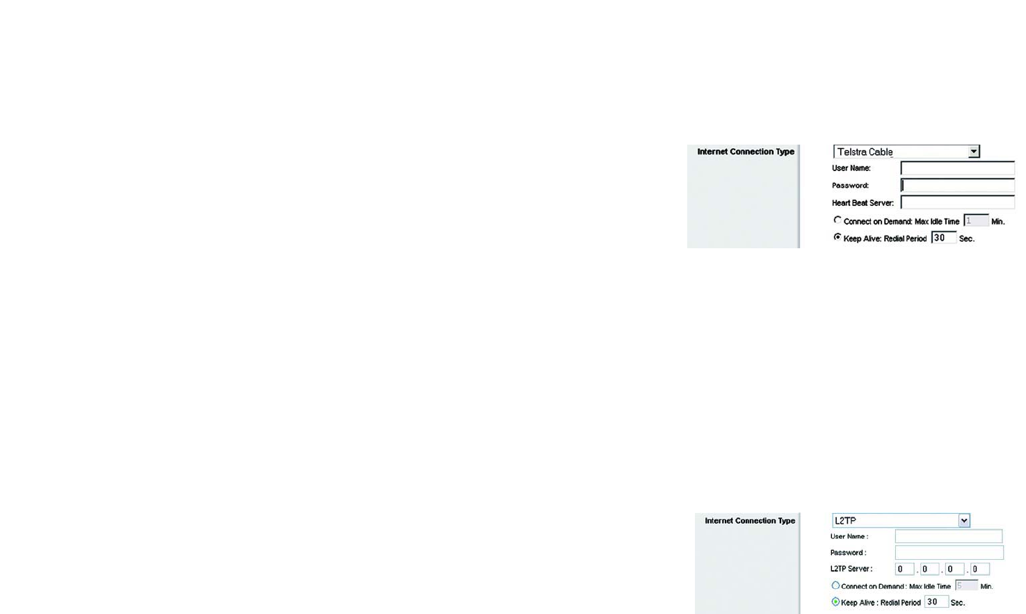 Keep Alive: Redial Period (Connessione sempre attiva: Intervallo di riselezione). Se si seleziona questa opzione,